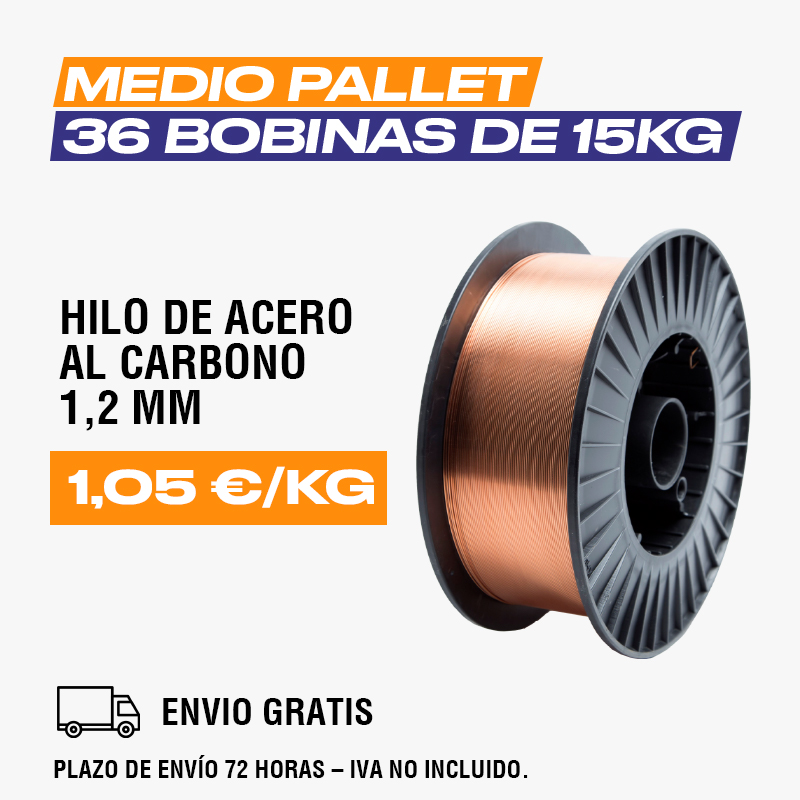 1/2 pallet (36 bobinas de 15 Kg) hilo de acero al carbono ER70S-6 SG2 1,2 mm 689.55 IVA INCLUIDO