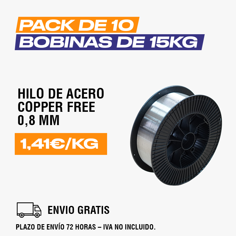 Fabricado con un acabado sin cobre de alta calidad para mejorar la alimentación, la estabilidad del arco y la conductividad, su acabado superficial reduce el desgaste de las boquillas y disminuye de forma considerable el número de proyecciones.
